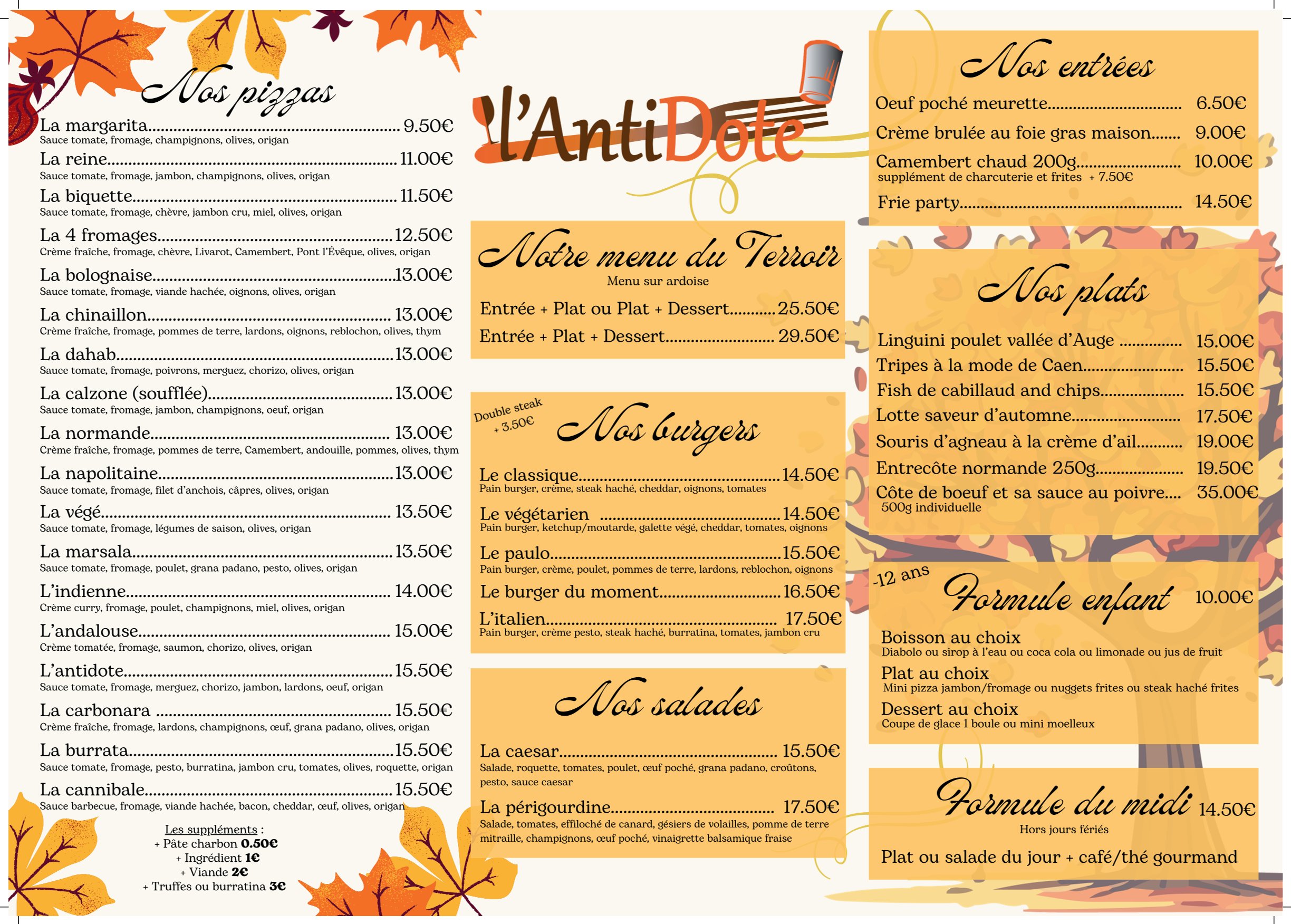 Ouvert depuis octobre 2017, le restaurant pizzeria L’Antidote propose une cuisine traditionnelle et généreuse. Si le choix est de mise sur les cartes, l’équipe de l’établissement veille avant tout à proposer des produits frais et de saison.